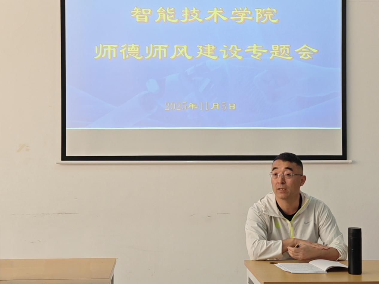 为深入贯彻学校《关于深化“三风”建设的实施意见》精神,进一步加强教师队伍建设,2025年11月5日,智能技术学院在城轨实训室召开师德师风建设专题会议。会议聚焦“严守上课纪律、强化课堂管理”核心议题,由学院党总支书记佟珊珊主持,冯新红院长作主题讲话,学院全体教师参会。