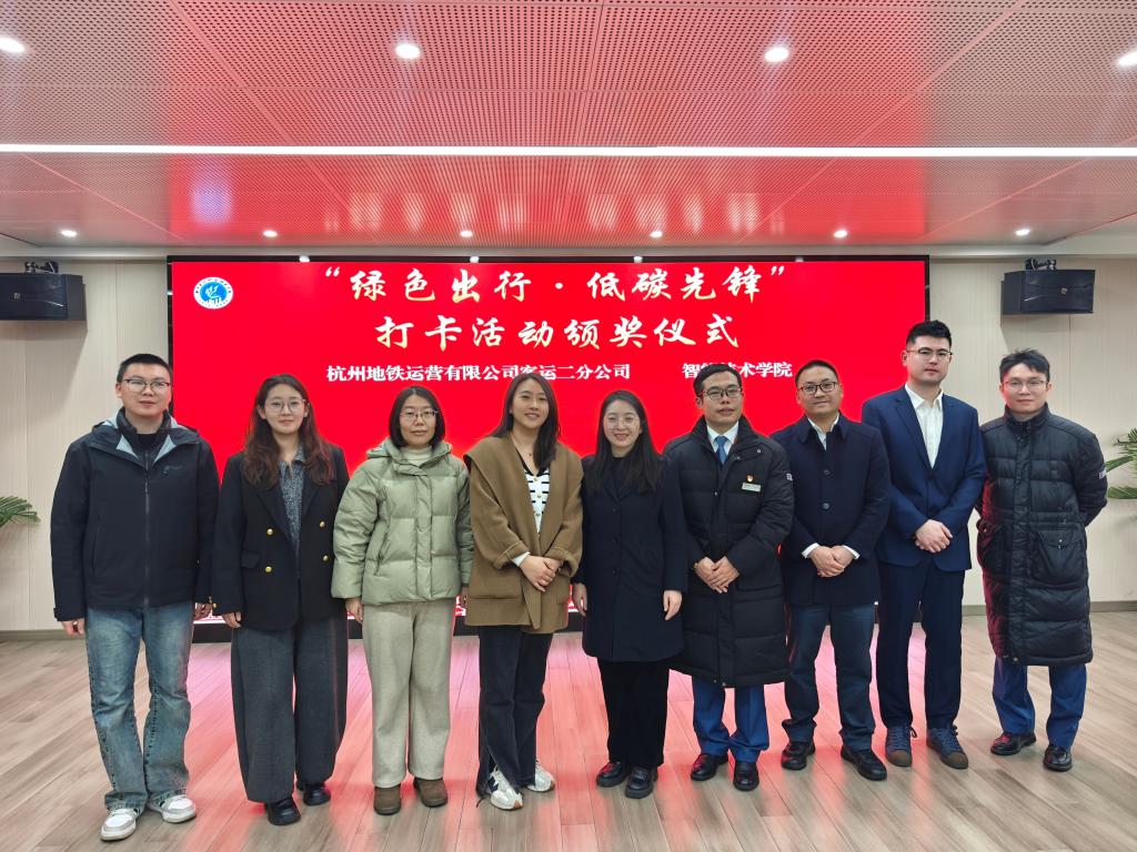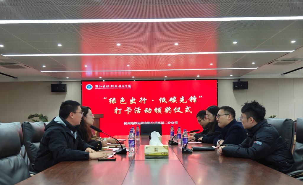 2026年1月15日上午,“绿色出行·低碳先锋”打卡活动颁奖仪式在第三会议室举行。本次活动由杭州地铁运营有限公司客运二分公司与智能技术学院联合举办,旨在表彰在绿色出行实践中表现优异的学生,进一步推动校企协同育人,传播低碳生活理念。