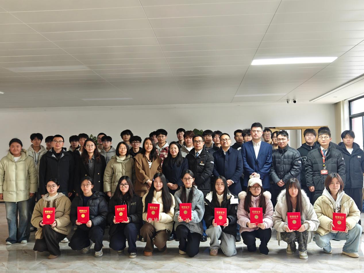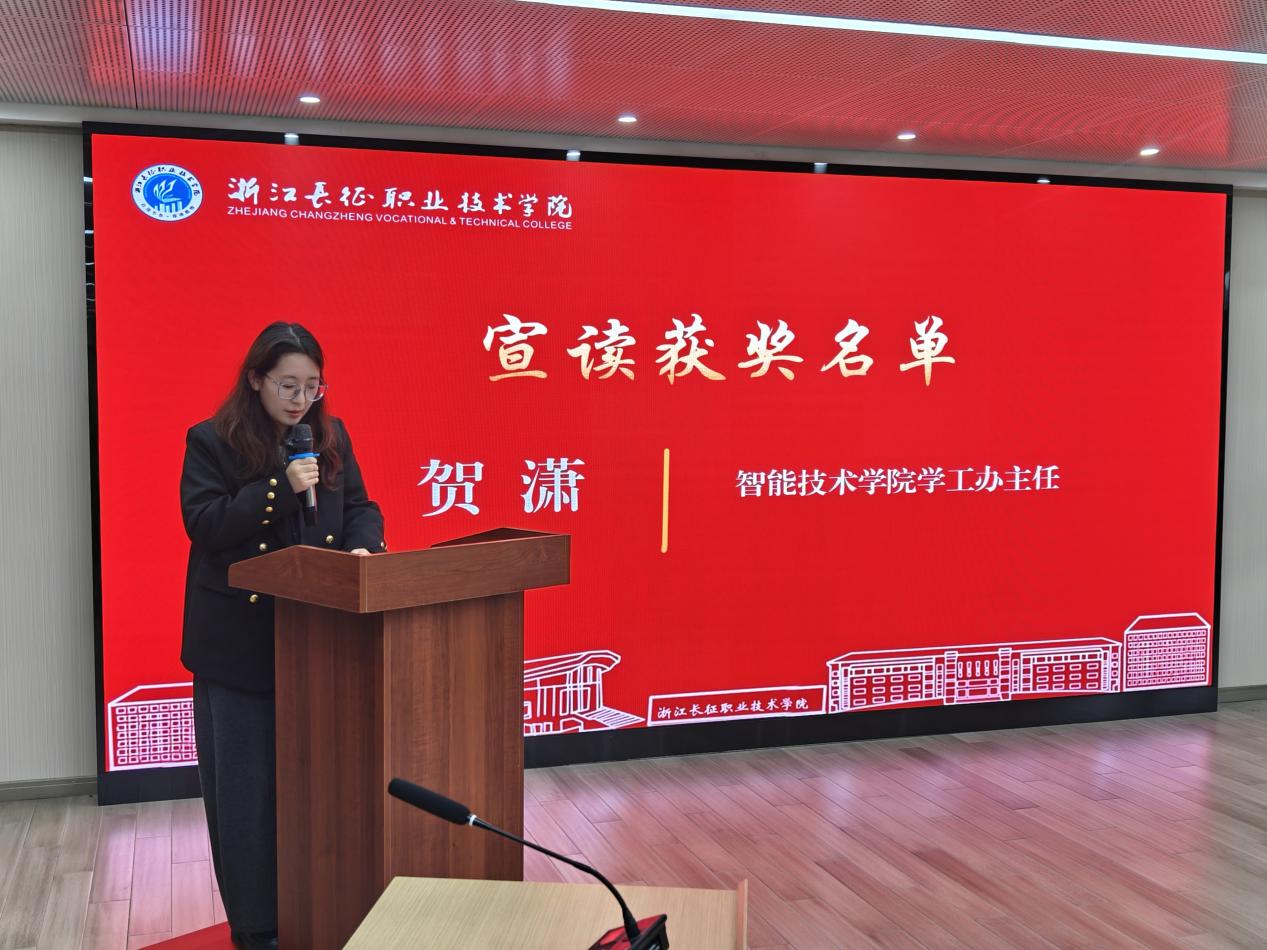 在颁奖环节,学工办主任贺潇宣读获奖学生名单。与会领导共同为获奖学生颁发荣誉证书。