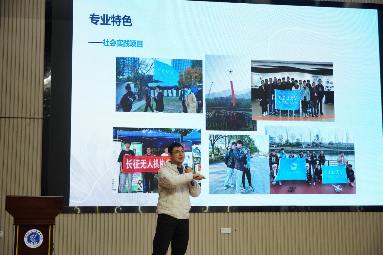 中午,双方在第二报告厅举行专题交流会。智能技术学院党总支副书记佟珊珊致欢迎辞,无人机专业教师朱强系统介绍了专业建设与人才培养体系,石瑜峰老师则分享了学院第二课堂及学生活动开展情况。宣讲会通过视频展示、专业讲解、互动问答等形式,全面呈现了我校在无人机领域的教学特色与育人成果。