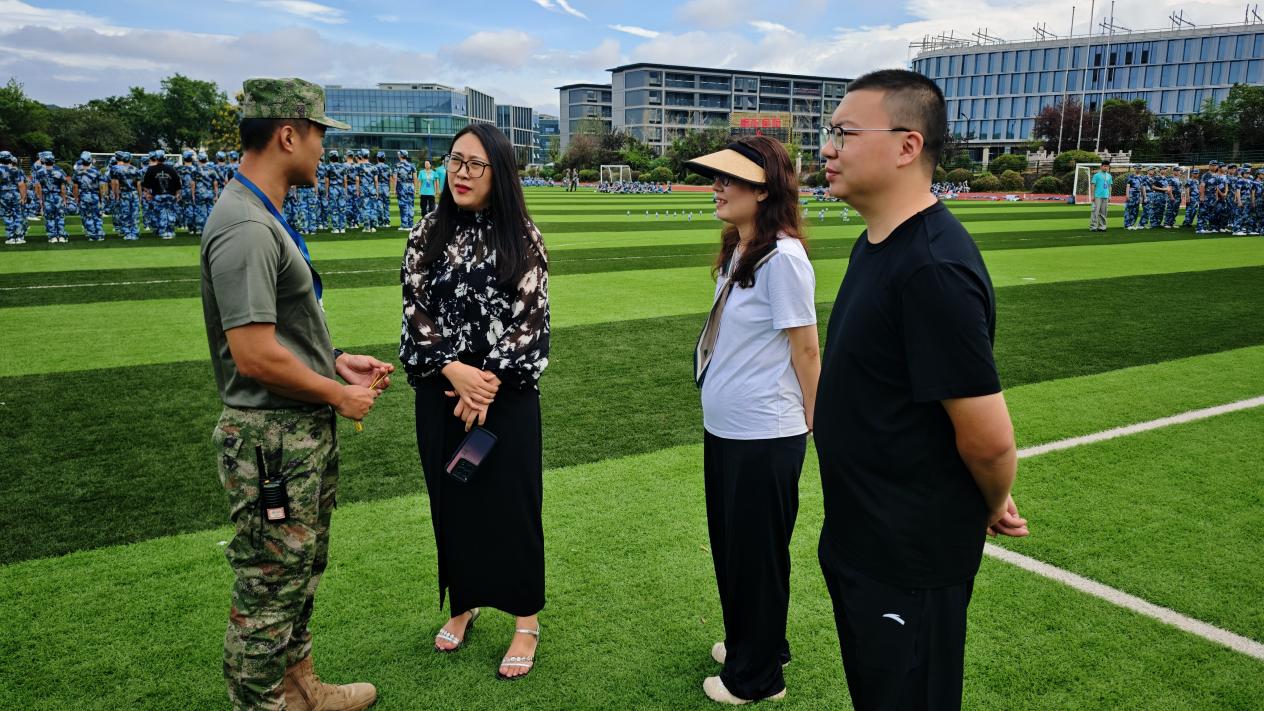 秋日飒爽,智能技术学院学院党总支副书记佟珊珊,学工办主任贺潇,学工办副主任石瑜峰亲临军训场地指导军训训练情况问候教官、看望新生。