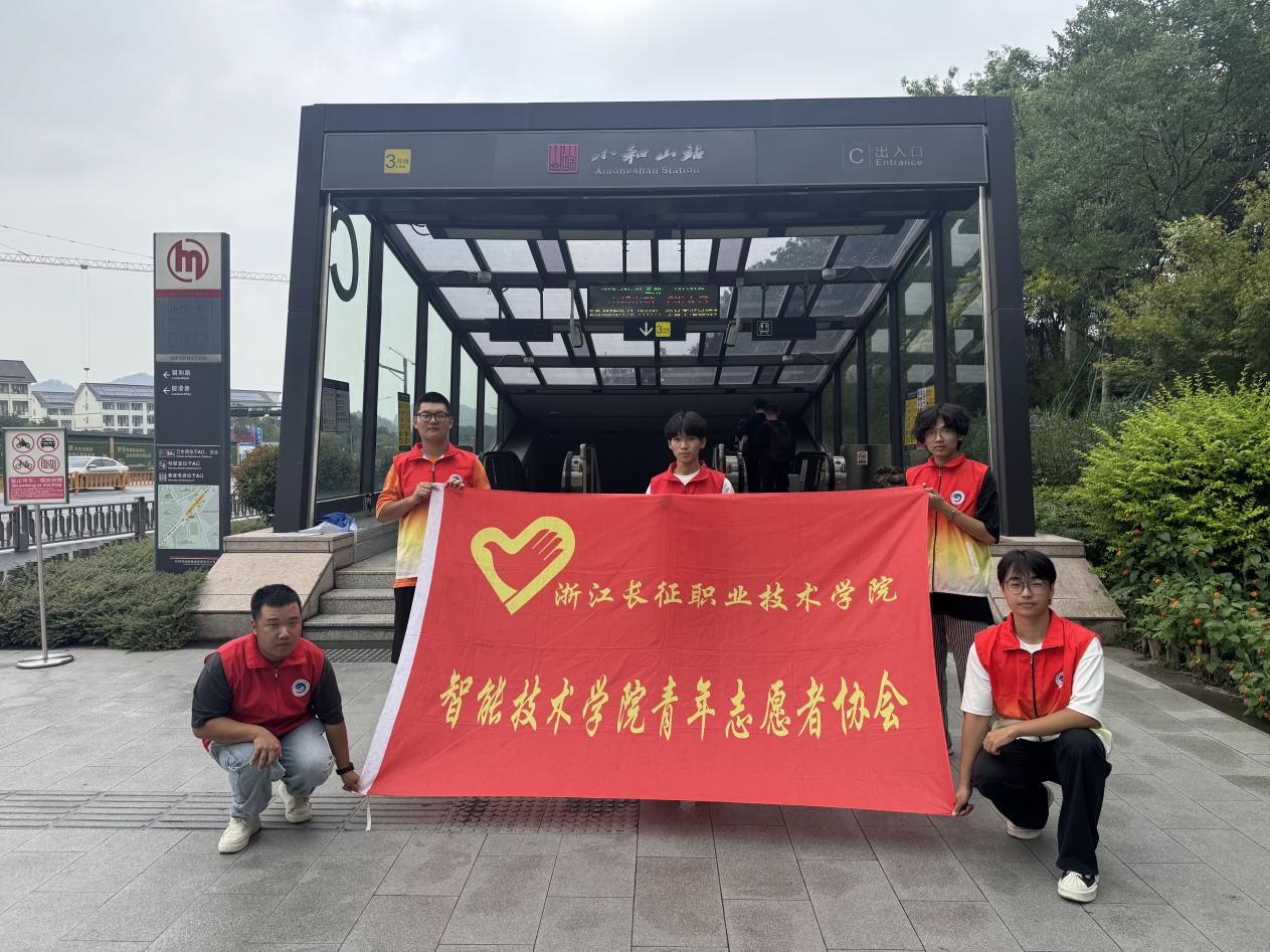2025年9月30日,在国庆黄金周即将来临之际,智能技术学院“杭铁智院服务队”的志愿者们奔赴小和山地铁站,开展以行李搬运、出行引导为主题的志愿服务活动,为往来旅客提供暖心帮助,展现了学院学子服务社会的青春担当。
