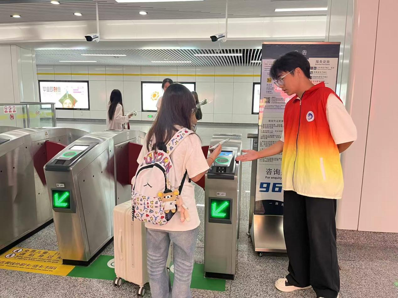 适逢假期出行高峰,小和山地铁站内客流密集,不少携带大件行李的旅客在站内通行不便。志愿者们迅速投入服务,在安检机旁、闸机口、电梯处等重要点位主动伸出援手,协助旅客搬运沉重行李,并提供路线指引和问询解答。他们用真诚的服务化解了旅客的出行难题,用实际行动传递了互助友爱的温暖。