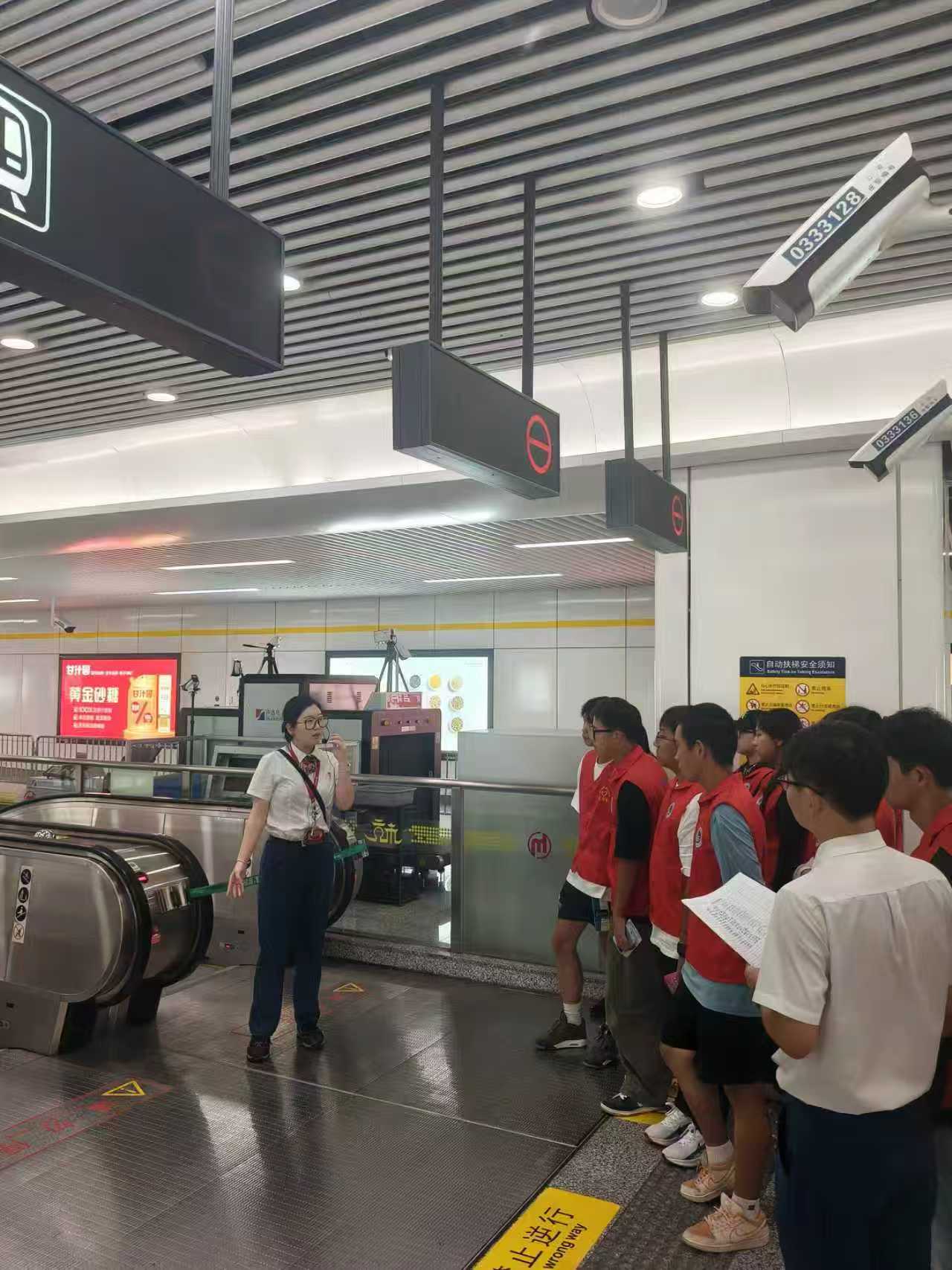 设备运维环节,师生们深入地铁扶梯设备区。在专业人员指导下,按照“外观检查—运行测试—安全装置核验”流程,对扶梯扶手带、梯级、紧急停止装置等关键部位开展模拟巡检,增强了对设备异常情况的判断与处理能力。