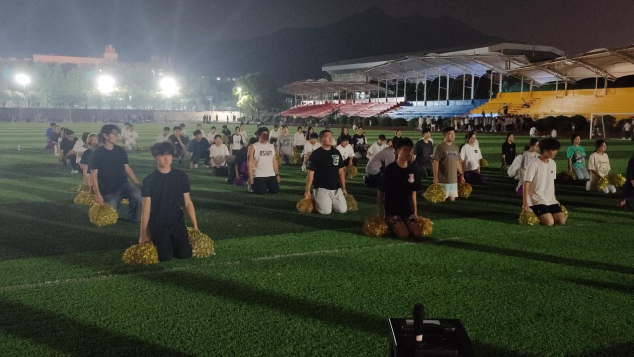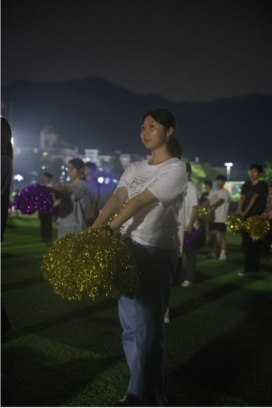 为在校运动会开幕式上展现智能技术学院的卓越风采,我院方阵与啦啦操队的队员们正以饱满的热情和坚定的意志,进行着最后阶段的紧张排练。