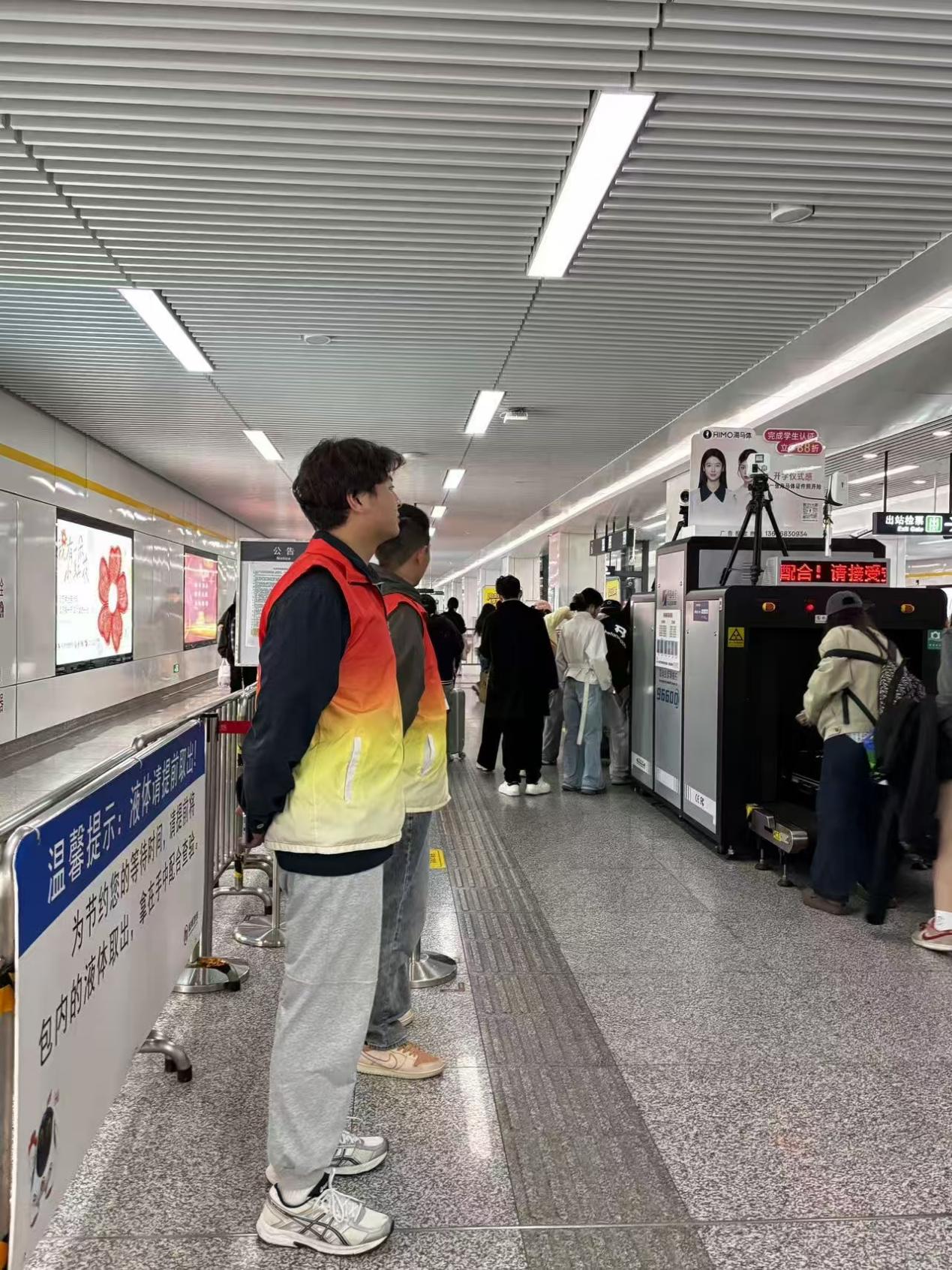 在地铁绿汀路站与小和山站,志愿者们迅速投入角色。安检区域里,大家耐心协助乘客放置行李、讲解安检规范,面对携带大件物品的乘客,主动上前帮扶,让安检环节高效又温暖;站台之上,志愿者们手持扩音设备,一遍遍提醒乘客“站在黄线以内、先下后上”,遇到不熟悉线路的市民,立刻拿出地铁图细致讲解换乘站点,用专业指引化解出行困惑。