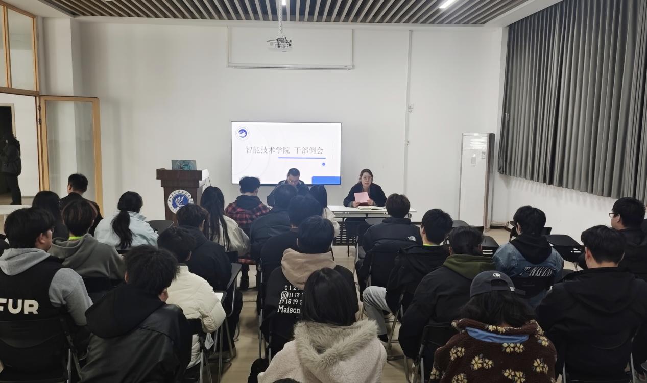 11月25日,智能技术学院学生会在老食堂三楼学生事务中心活动室召开了第一次干部例会。由智能技术学院学工办主任贺潇老师,学工办副主任石瑜峰老师主持召开,学院学生会主席团全体成员、各部门部长、副部长以及助理团成员共同参与了本次会议。