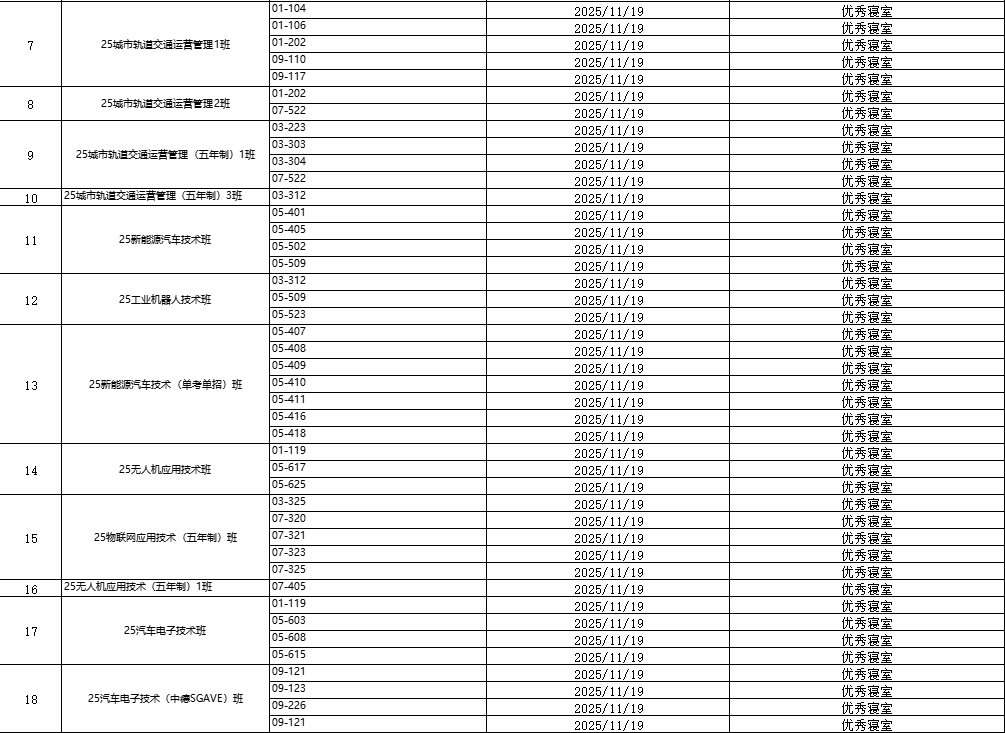 智能技术学院于本周四晚上17:40在2教2310教室开展会议,对上周标寝室及优秀寝室进行了表彰。学院生活部组织检查人员针对宿舍卫生环境、楼道卫生、宿舍整体氛围及违规电器使用情况进行了细致的检查。对检查出脏乱差的宿舍进行通报,对优秀宿舍进行表彰。同学们也在积极提升自身文明修养,争做良好行为规范,努力为寝室,班级争取这份荣誉。