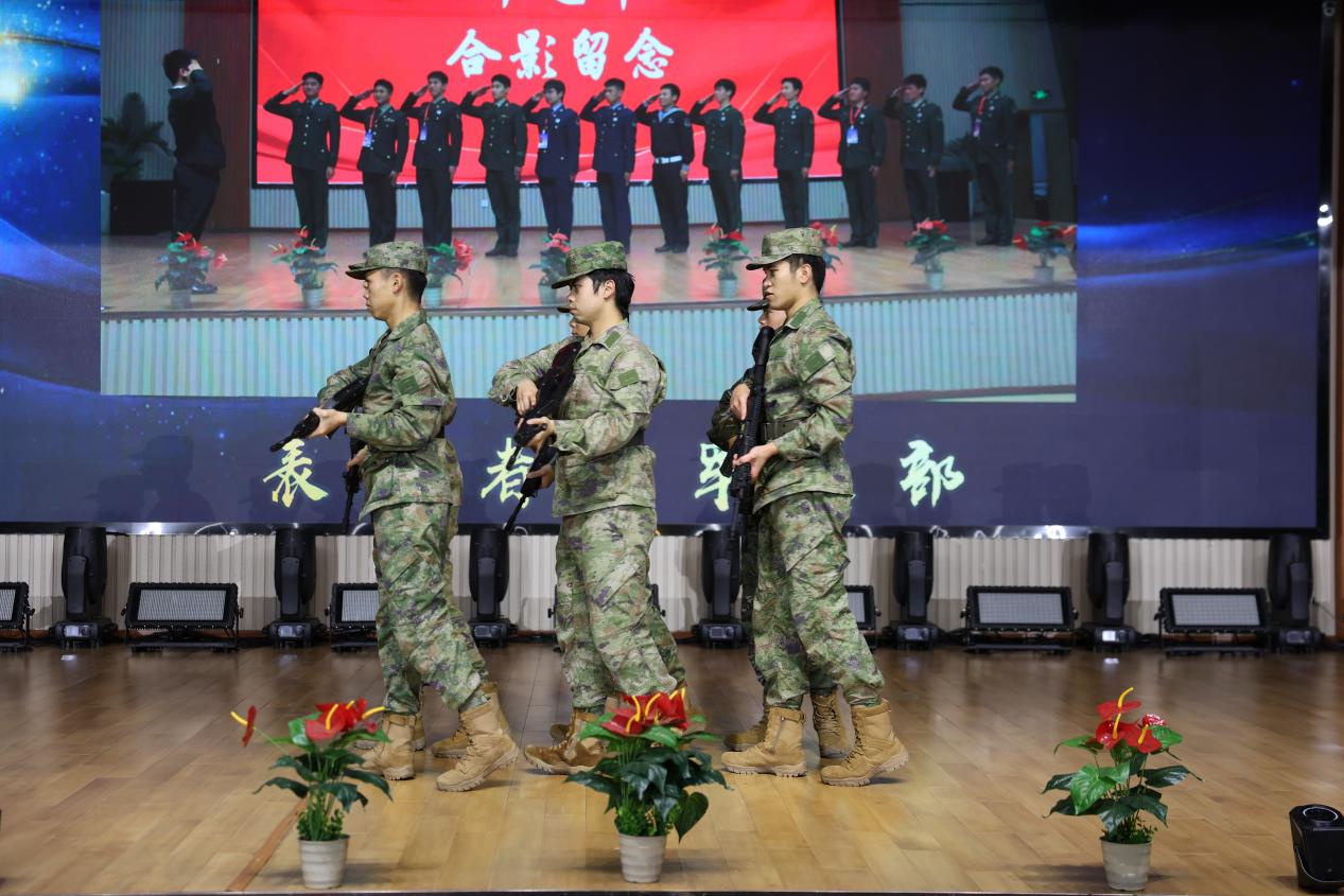 军退部以《刺杀擒敌》震撼开场。队员们动作迅猛整齐,突刺格挡铿锵有力,呐喊声声气势如虹,展现出纪律严明、团结协作的昂扬风貌。这段充满力量与血性的表演,瞬间点燃全场热情,也为整晚的音乐盛宴奠定了昂扬向上的基调。