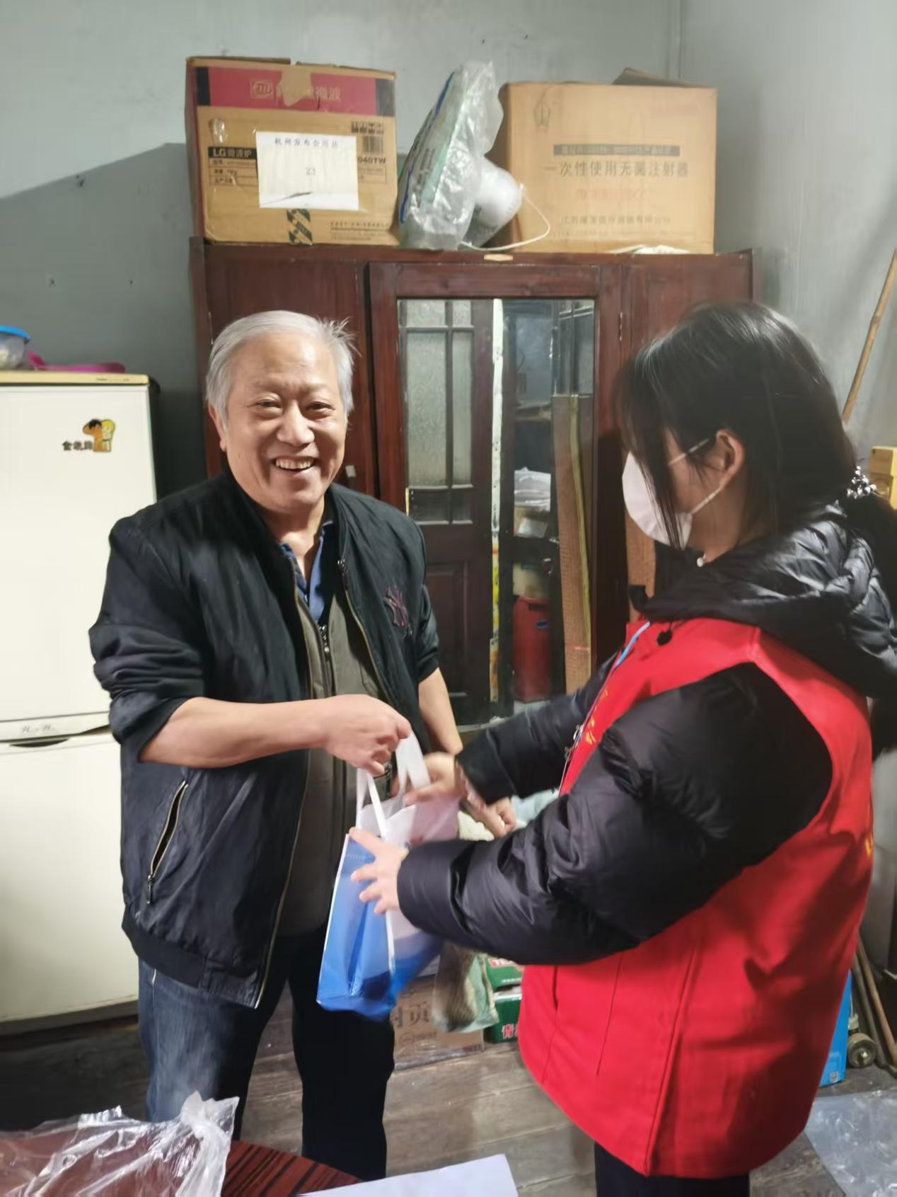 活动中,志愿者们将精心准备的盐、肥皂等日常生活必需品送到每位老人手中。这些看似平常的物品,却包含着对老人健康与卫生的真切关心。收到物资后,老人们的脸上都露出了温暖的笑容,向志愿者们表达着真挚的谢意,现场洋溢着浓浓的喜悦与暖意。