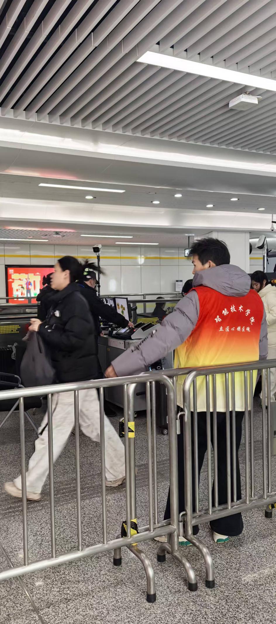 2025年12月19日,智能技术学院“杭铁志愿服务队”再度集结,走进杭州地铁绿汀路站与小和山站,以“青春助行轨交·实践淬炼匠心”为主题,开展了一场沉浸式地铁服务实践活动。志愿者们主动放弃休息时间,在安检引导、客流疏导、乘客问询等多个岗位上倾情投入,用青春担当为城市轨交服务增添了温暖活力。