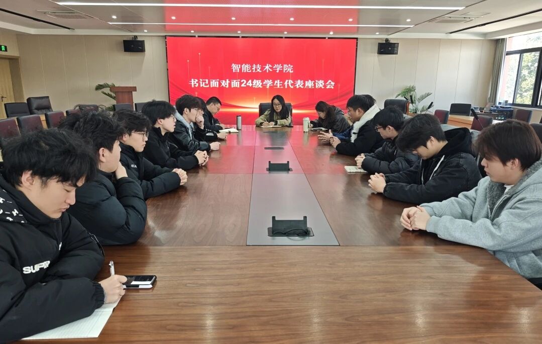 为深入践行“以生为本”的育人理念,搭建师生高效沟通桥梁,精准回应学生成长诉求。2026年1月8日,智能技术学院在第三会议室举行“书记面对面24级学生代表座谈会”。