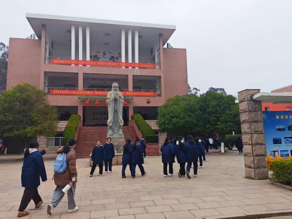 走出办公室时,广场上穿着蓝校服的学弟学妹们正嬉笑着走过,阳光穿过云层落在孔子像上。我忽然明白,母校的意义不仅是承载青春的地方,更是无论走多远,都能回来汲取力量的港湾。带着老师的期许与祝福,我会继续带着这份底气,在新的旅程里坚定前行。